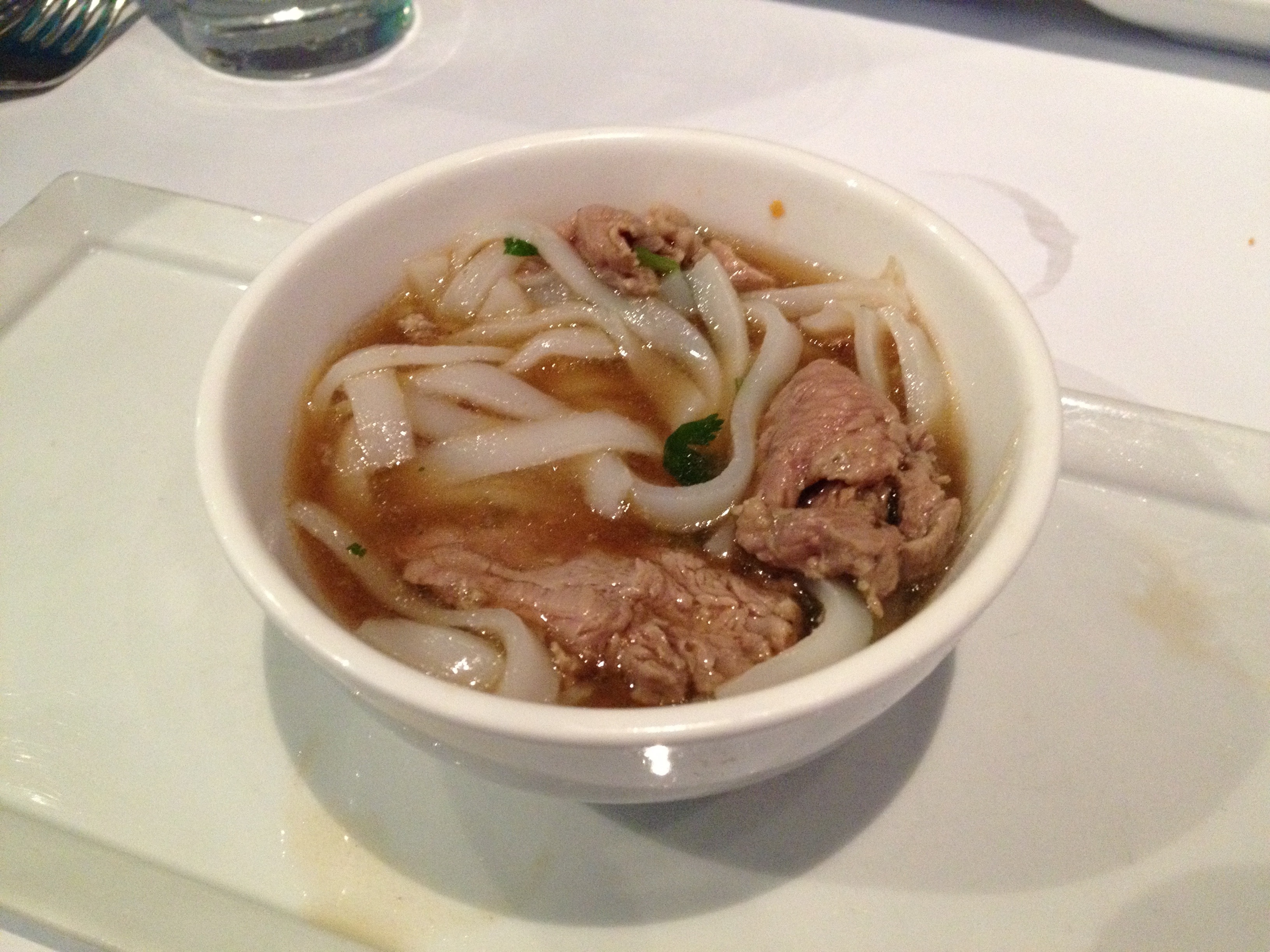 Finally, and with much anticipation, the pho arrived in a huge bowl. We ladled it out into smaller bowls (note puddles of sloshed soup in above photo) and got to work. It was magnificent. There are probably better examples of the breed lurking somewhere in the dark corners of the Bay Area, but for my money I’m quite happy indeed with HNVX’s rendition. The beef was tender and flavorful, the broth was rich, and there were plenty of noodles to go around. The next time we come here I will definitely be getting this, and I won’t be sharing.