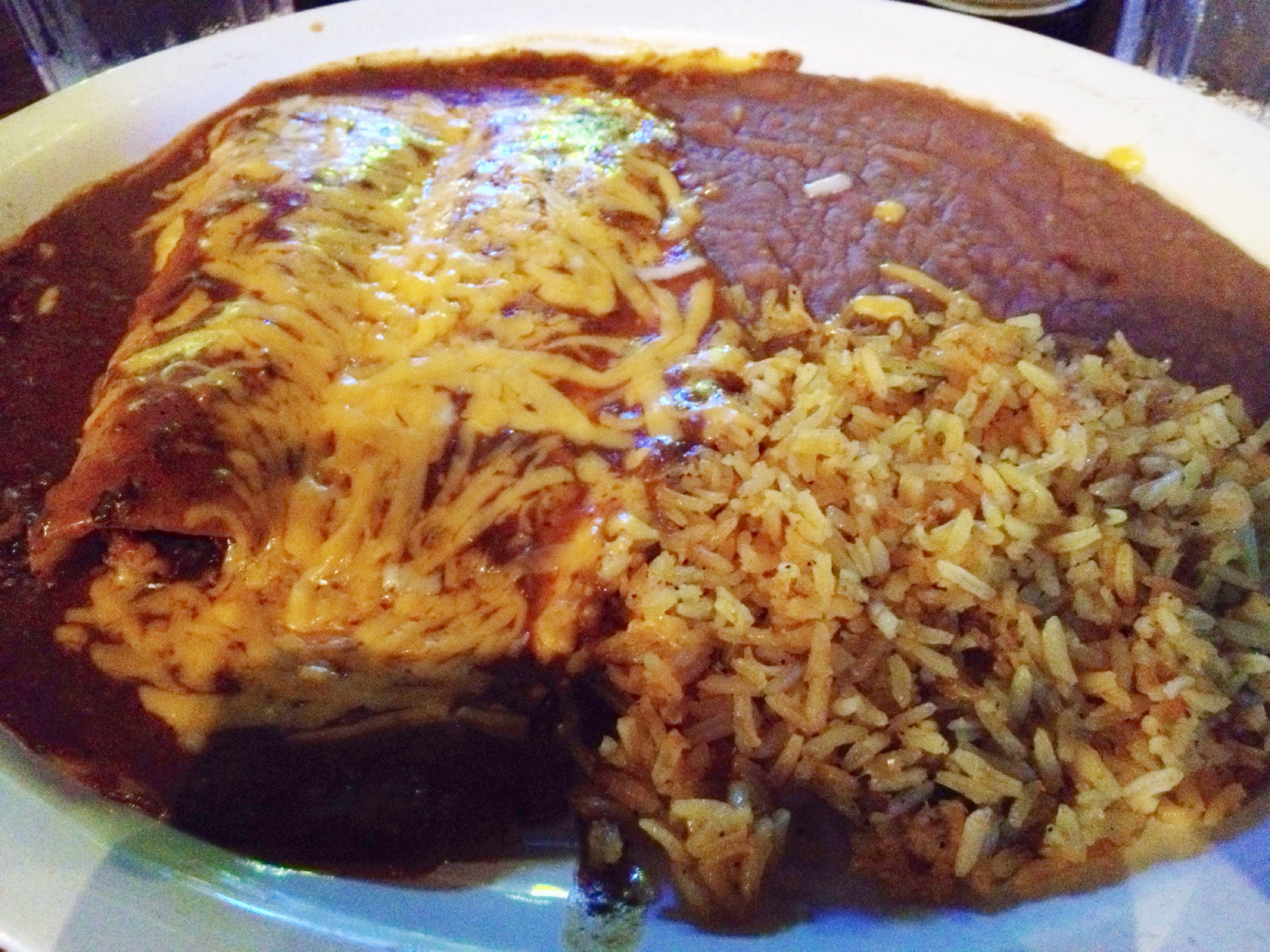 The bacon wrapped shrimp were very flavorful but perhaps a bit dry, and it was the same story with the bed of beef fajitas they sat on. My enchiladas were ever so slightly on the plain side, but the beef was seasoned well, the rice was excellent, and everything was sizzling hot.