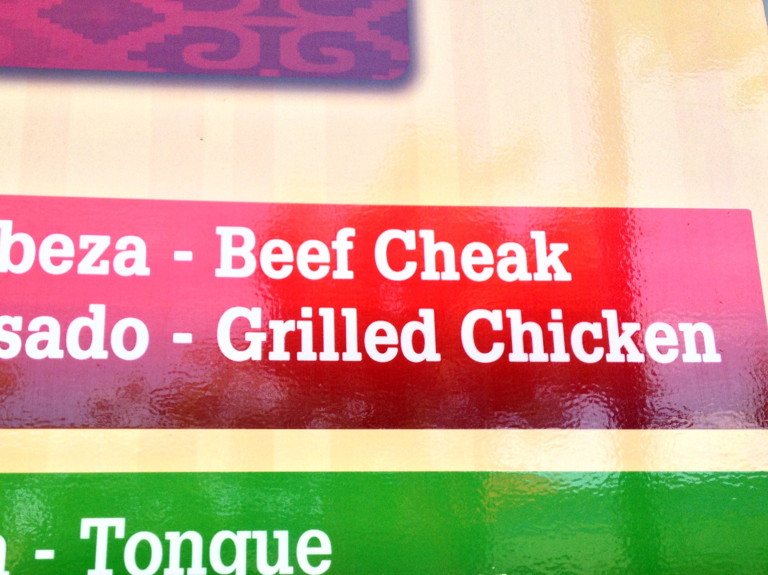 Exciting and bizarre multi-culture fusion cuisine is great and all, but sometimes I just want some really good Mexican food. A quick browse of the short-but-sweet El Taco de Oro menu told me I was in the right place. The first thing on the menu that caught my eye, not because it sounded delicious but because it confused me, was “beef cheak”. This is either a mildly amusing typo or a cleverly marketed combination of steak and beef cheek.