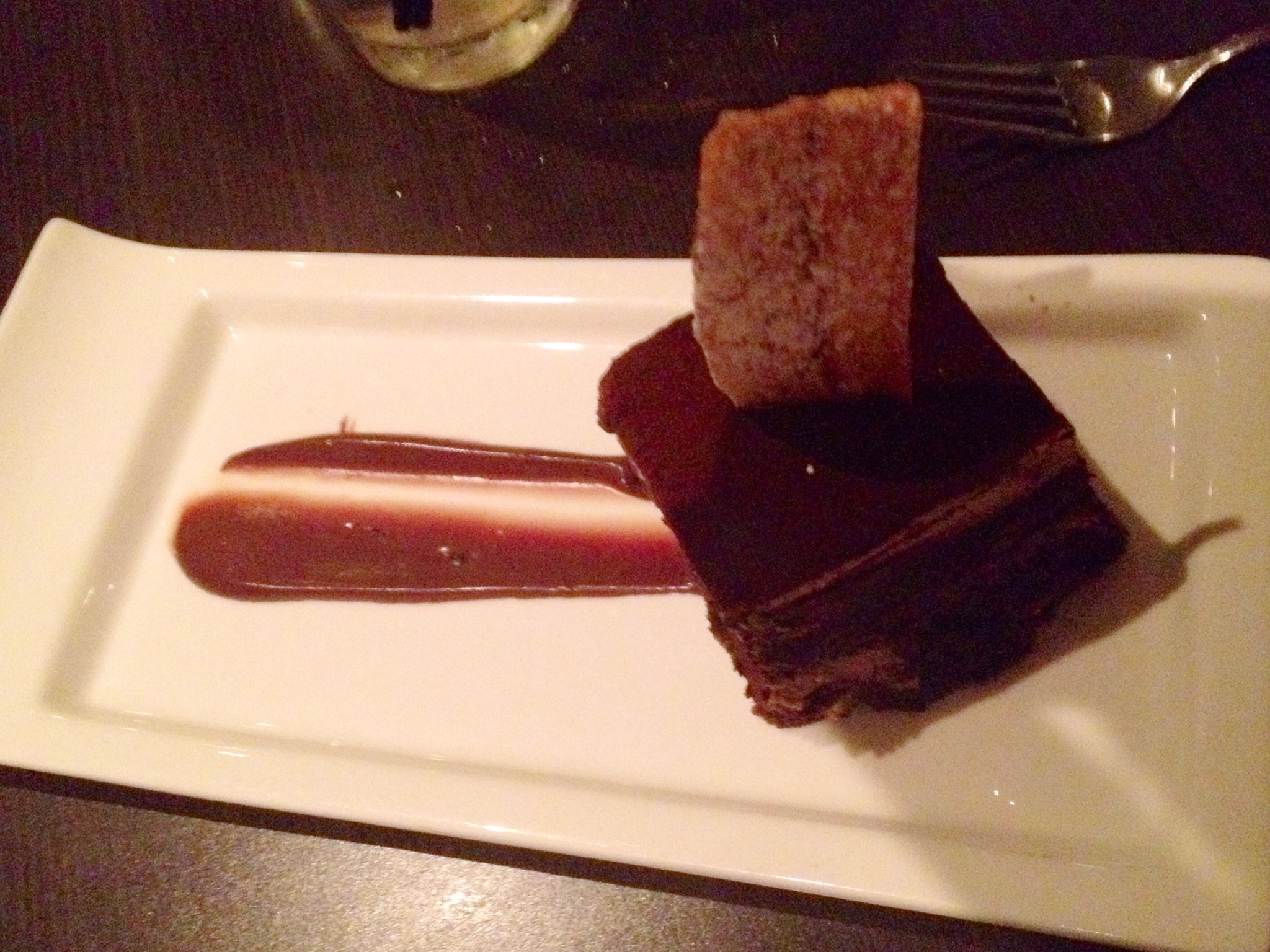 The well-executed (although predictable) devil’s food cake was delicious, but it was the ginger cookies that got my attention. They were just-so chewy, warm, and intensely gingery. Two of us at the table thought the cookies were tastiest, while the devil’s food cake and bananamisu got one vote each for best dessert. Because I don’t care about opinions that differ from my own, we can conclude that the ginger cookies were indeed the best. One thing that did catch my eye about the bananamisu and devil’s food cake was how similar they looked to one another. They were both dark brown, rectangular bricks of the same size served on the same dish at the same offset. Considering how creatively everything else was plated, this stood out as a bit of a shortcut. There, how’s that for being picky?