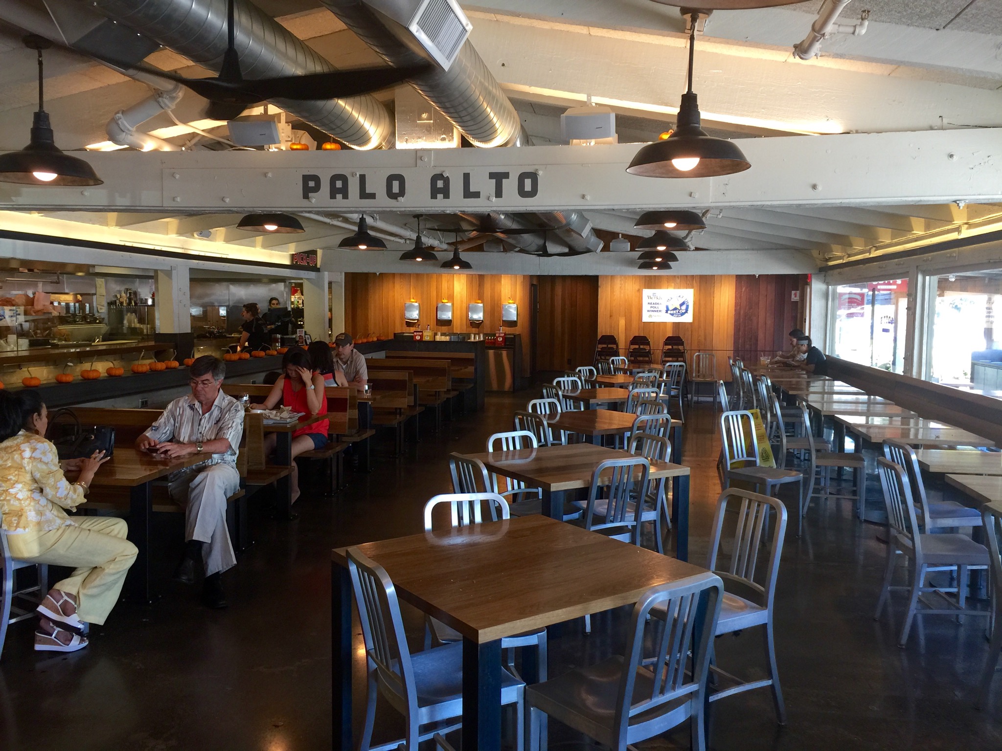 Because I think I am smarter than my GPS unit, I decided to take El Camino from the South Bay all the way up to Palo Alto. Twelve years and several months later, we arrived at our destination. The right side of my face was getting a little sunburned from being subjected to the Spousal Glare of Death coming from the passenger seat, so I exited the car quickly and made sure to be as politely expedient as possible. We went inside, placed our orders at the cash register, and sat at a booth to await our grub.