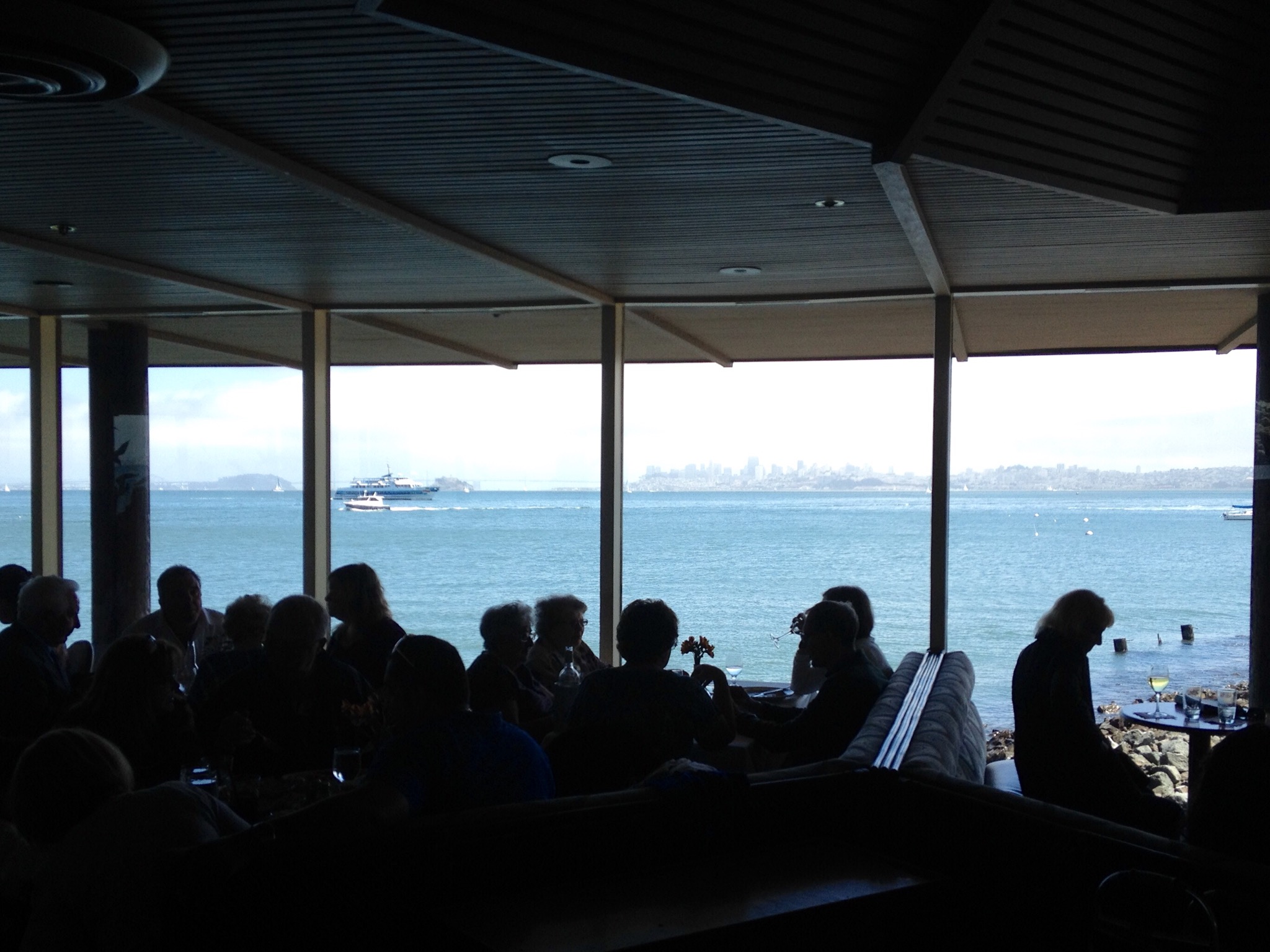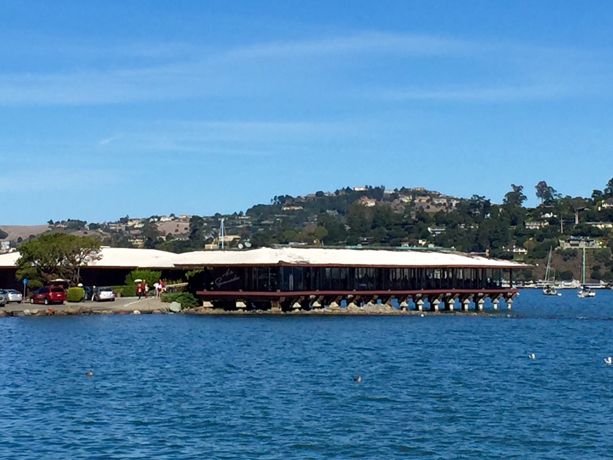 After a painful but scenic crawl along the length of downtown Sausalito, I finally managed to shoehorn the car into the very last parking spot in town. My lunch party and I started strolling towards The Spinnaker, debating what sorts of appetizers we should order. Arriving inside the restaurant is a bit like stepping back in time to 1982. Everything you see is dated and drab, including many of the other patrons. I don’t mean to be unkind, but there were more electric scooters than a bumper car factory.